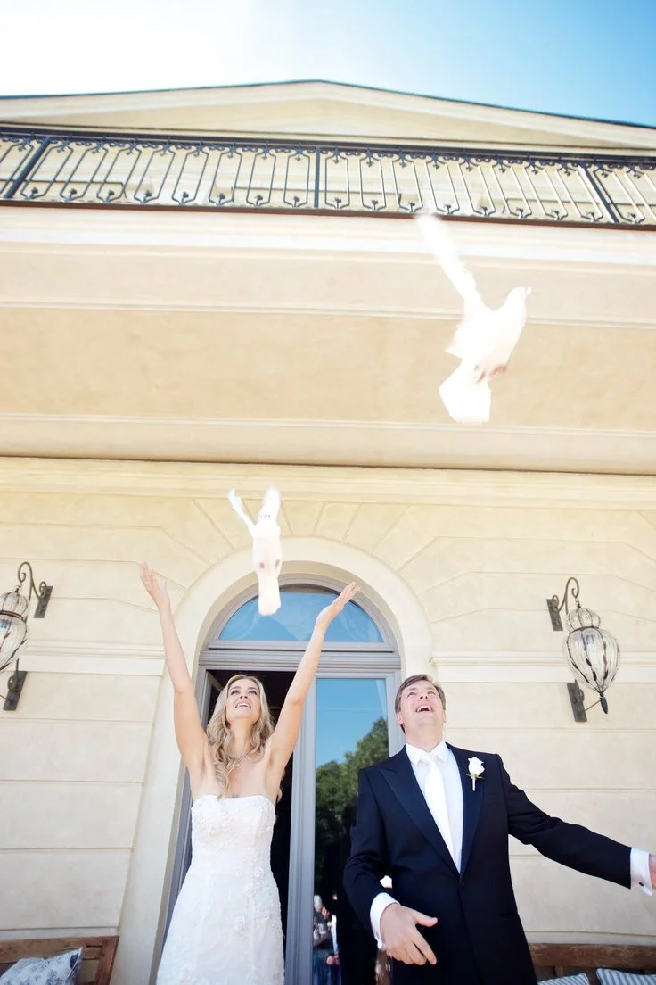. 2 Pure White Doves for ceremonial release by the bride and groom.